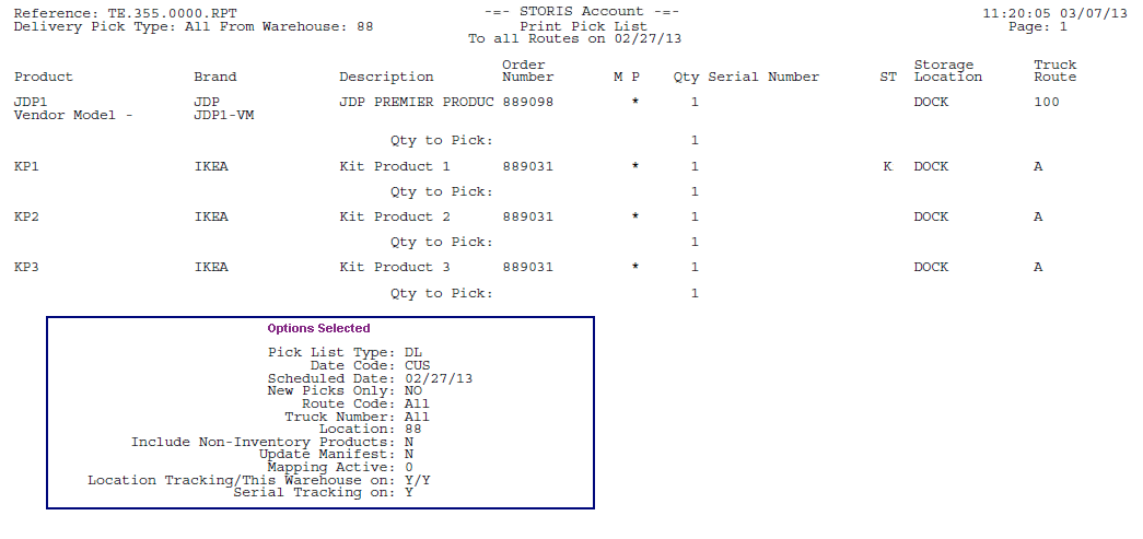 The Options Selected box below displays the selected run-time options for this sample, but does not appear when you actually print the document. The run-time options you select for each document print appear on the last page of your output.