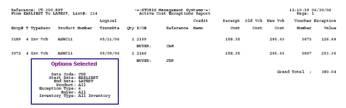 Report Active Costing Exceptions