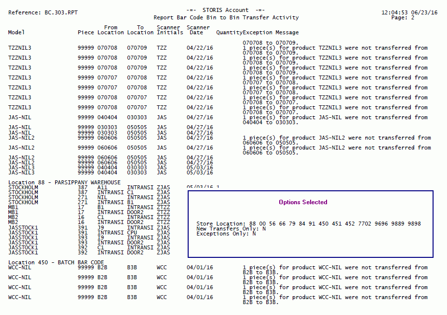 The run-time options selected for each report will print on the last page of the report output. The options selected for this report are being displayed in the Options Selected box for illustrative purposes only.