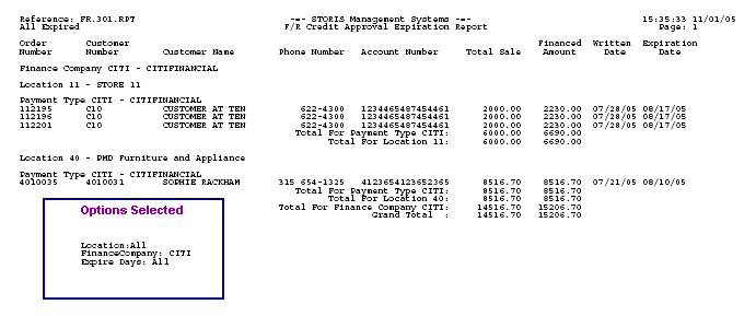 Report Financing Credit Expirations