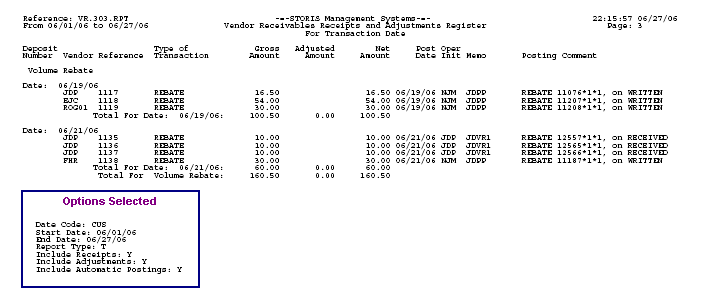 The run-time options selected for each report will print on the last page of the report output. The options selected for this report are being displayed in the Options Selected box for illustrative purposes only.