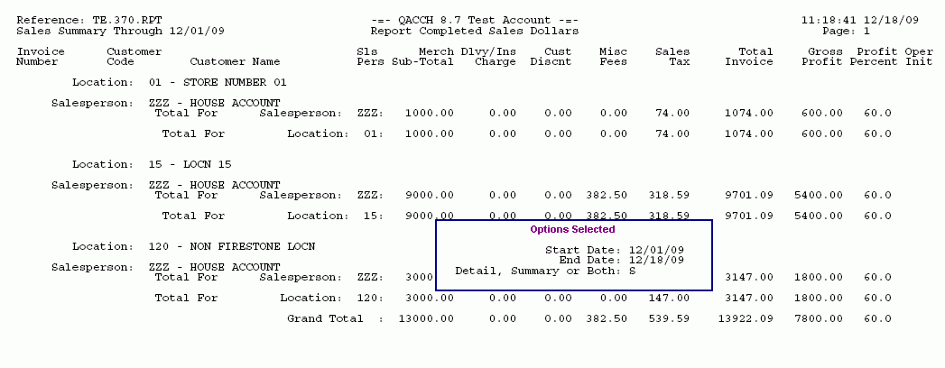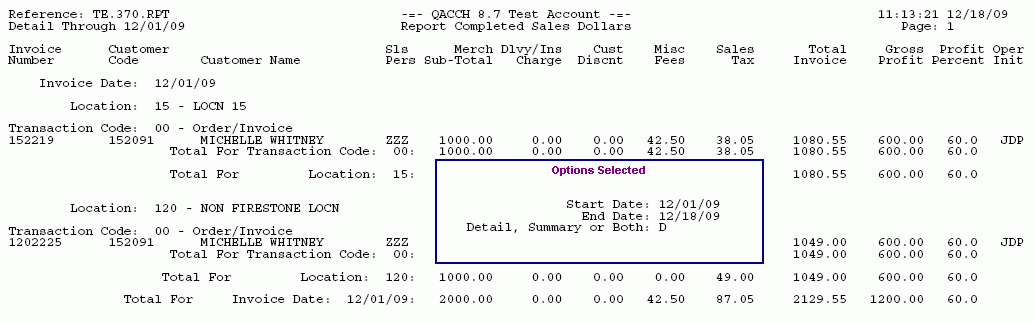 The run-time options selected usually print either in the report headers or on the last page of the report output. The options selected for this report are being displayed in the Options Selected box for illustrative purposes only.