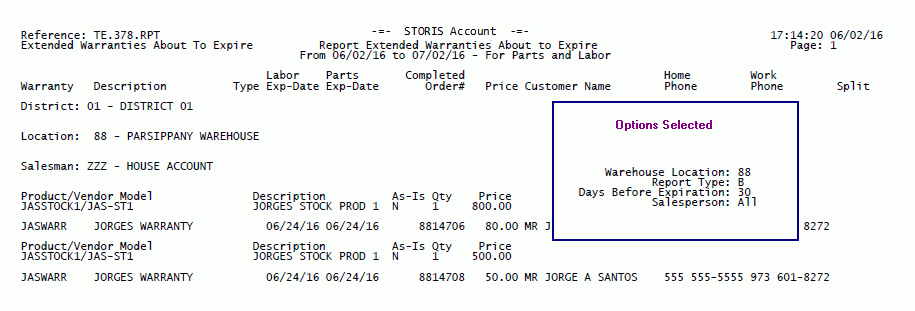 The run-time options selected for each report usually print on the last page of the report output. The options selected for this report are being displayed in the Options Selected box for illustrative purposes only.