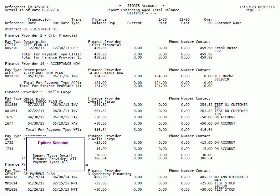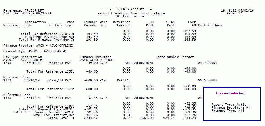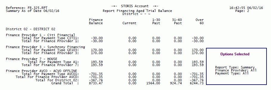 The run-time options selected for each report print on the last page of the report output. The options selected for this report display in the Options Selected box for illustrative purposes only.
