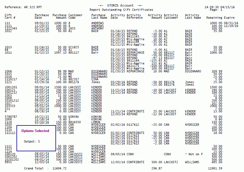 The run-time options selected for each report will print on the last page of the report output. The options selected for this report are being displayed in the Options Selected box for illustrative purposes only.