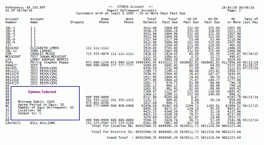 The run-time options selected usually print either in the report headers or on the last page of the report output. The options selected for this report are being displayed in the Options Selected box for illustrative purposes only.