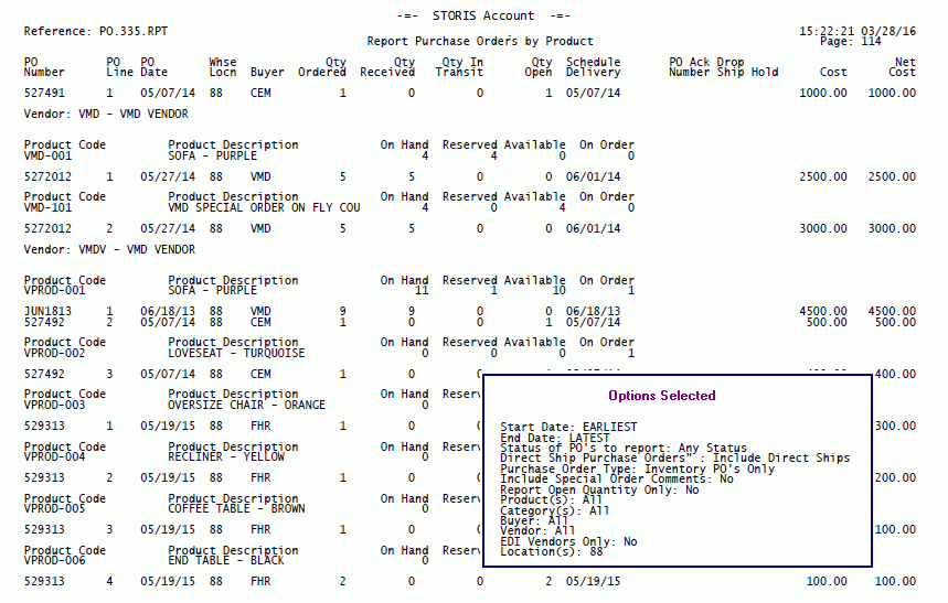 Report Purchase Orders by Product