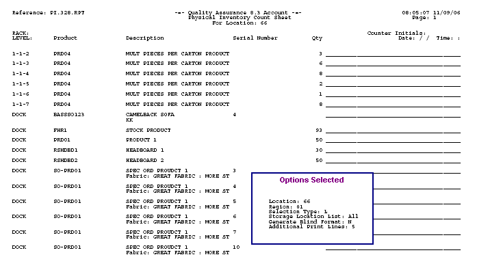 The run-time options selected for each report will print on the last page of the report output. The options selected for this report are being displayed in the Options Selected box for illustrative purposes only.