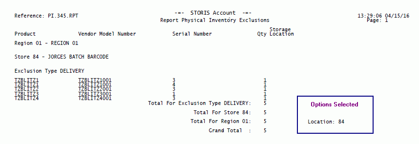 The run-time options selected for each report will print on the last page of the report output. The options selected for this report are being displayed in the Options Selected box for illustrative purposes only.