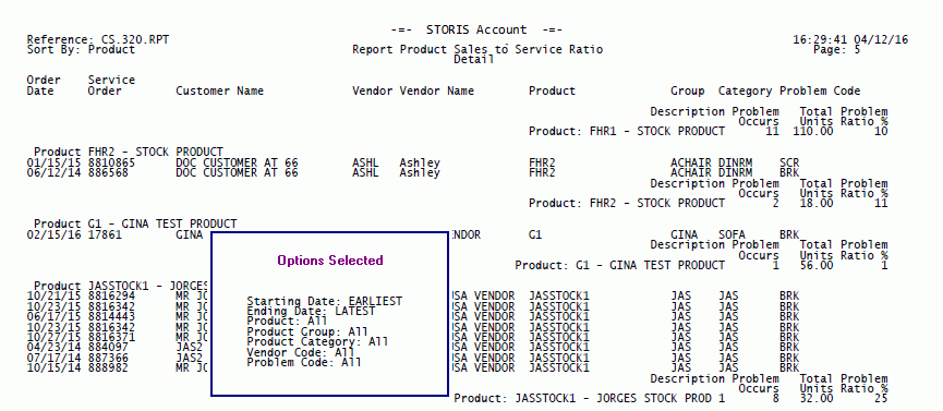 The run-time options selected for each report will print on the last page of the report output. The options selected for this report are being displayed in the Options Selected box for illustrative purposes only.
