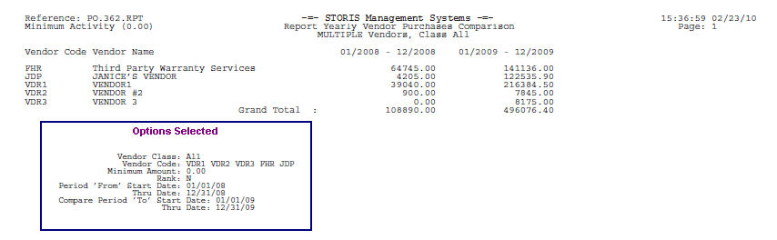 The run-time options selected for each report will print on the last page of the report output. The options selected for this report are being displayed in the Options Selected box for illustrative purposes only.