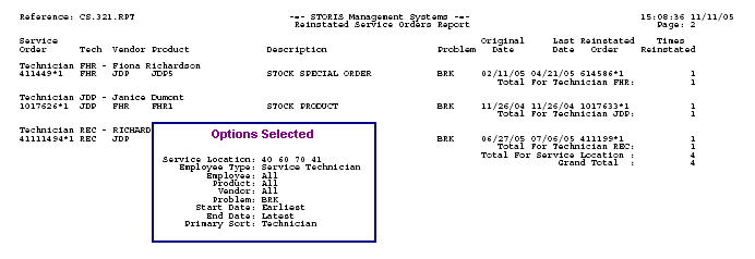 The run-time options selected for each report will print on the last page of the report output. The options selected for this report are being displayed in the Options Selected box for illustrative purposes only.