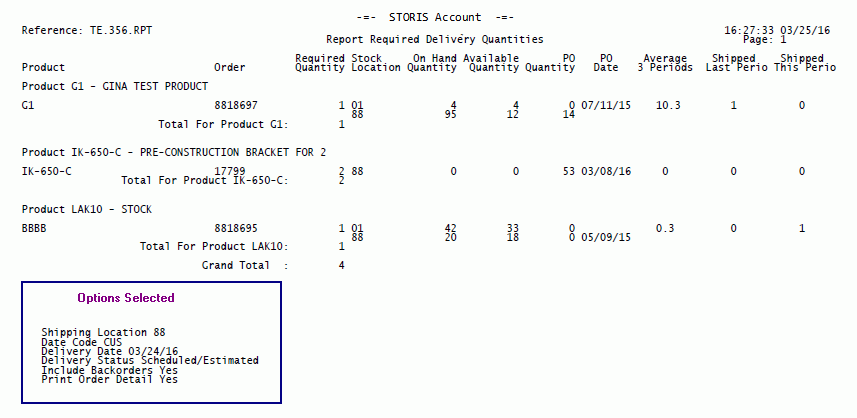 The Options Selected box below displays the selected run-time options for this sample, but does not appear when you run the actual report. The run-time options you select for each report appear on the last page of your report output. To return to the original report topic, click the Back button above.