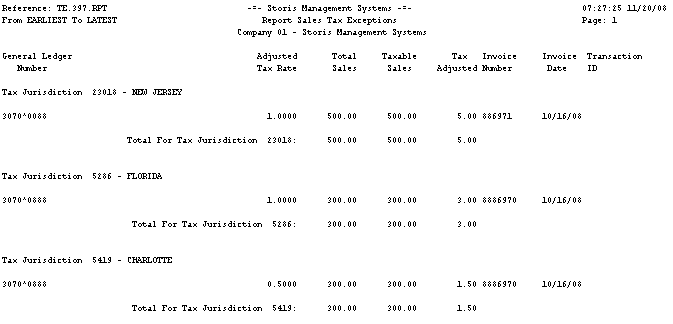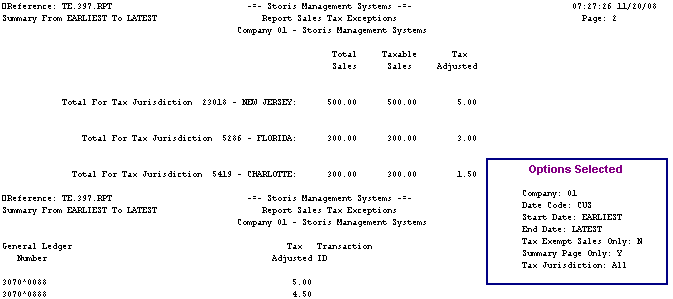 The Options Selected box below displays the selected run-time options for this sample, but does not appear when you run the actual report. The run-time options you select for each report appear on the last page of your report output. To return to the original report topic, click the Back button above.