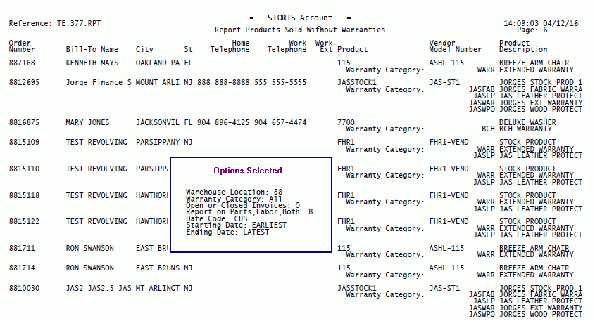 The run-time options selected for each report will print on the last page of the report output. The options selected for this report are being displayed in the Options Selected box for illustrative purposes only.