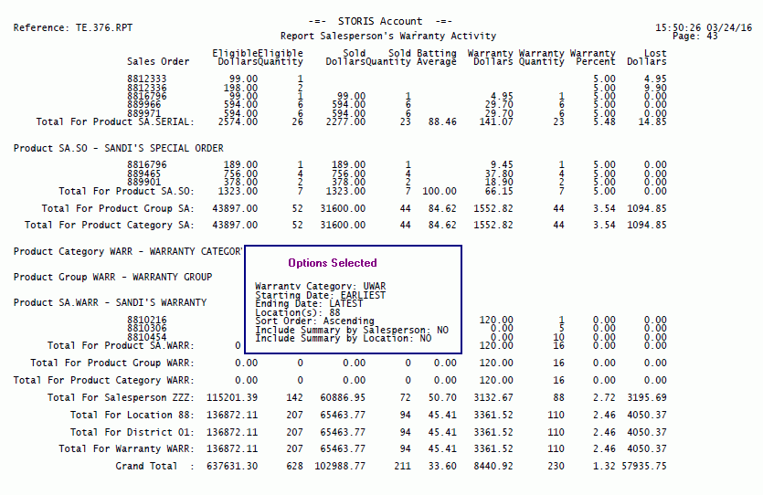 The run-time options selected usually print either in the report headers or on the last page of the report output. The options selected for this report display in the Options Selected box for illustrative purposes only.