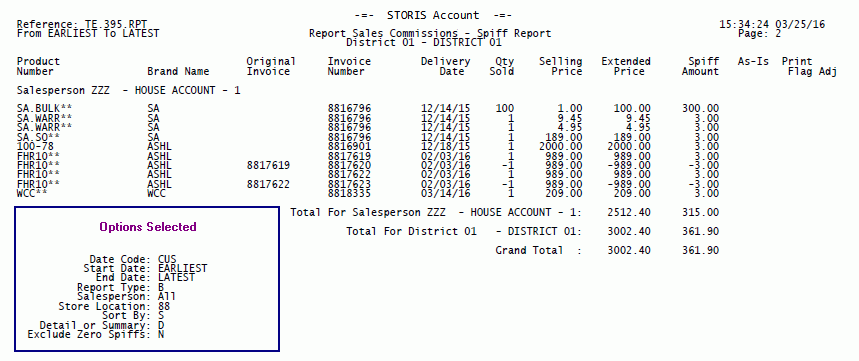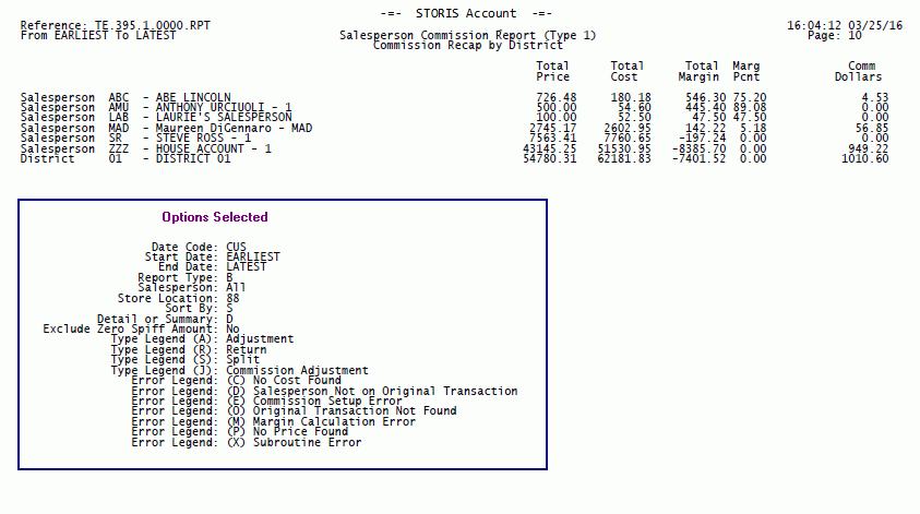 The run-time options selected for each report print on the last page of the report output. The options selected for this report display in the Options Selected box for illustrative purposes only. They do not appear on the printed report.