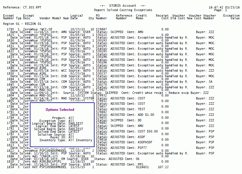 The run-time options selected usually print either in the report headers or on the last page of the report output. The options selected for this report are being displayed in the Options Selected box for illustrative purposes only.