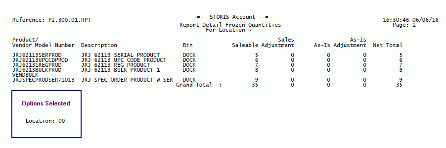 The run-time options selected for each report will print on the last page of the report output. The options selected for this report are being displayed in the Options Selected box for illustrative purposes only.