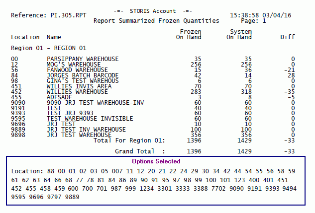 The run-time options selected for each report will print on the last page of the report output. The options selected for this report are being displayed in the Options Selected box for illustrative purposes only.