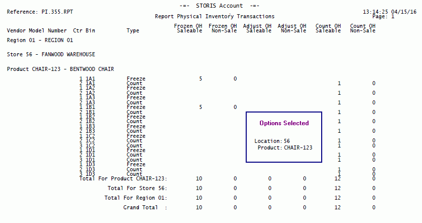 The run-time options selected for each report will print on the last page of the report output. The options selected for this report are being displayed in the Options Selected box for illustrative purposes only.
