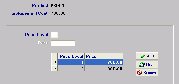 Load the price levels (if any) in the Pricing Level Table. If no price levels exist, the system does not apply level pricing for this product.