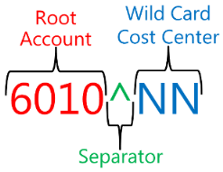 When the wild card is set, the program determines the location associated with the transaction (for example, the sales location or the location where goods were received into inventory), and appends the location cost center code to the General Ledger account, with the separation character (specified at the GL Account Number Separator field on the General tab of General Ledger Control Settings) inserted in between the two.