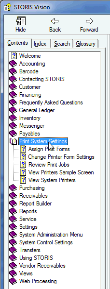 While using STORIS Help, you can print Help topics and information directly from the browser window.