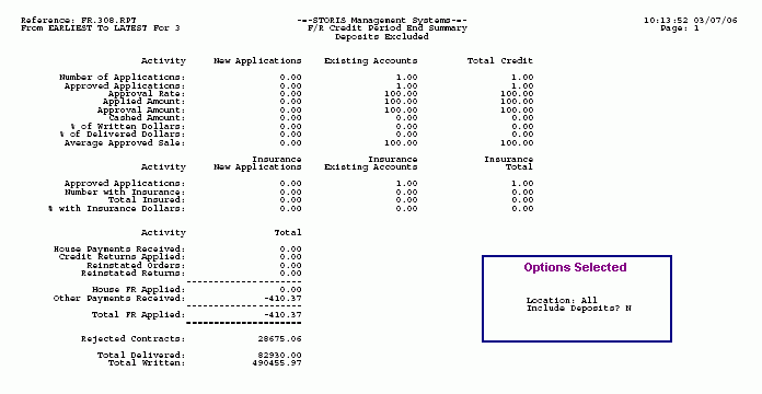 The run-time options selected for each report will print on the last page of the report output. The options selected for this report are being displayed in the Options Selected box for illustrative purposes only.