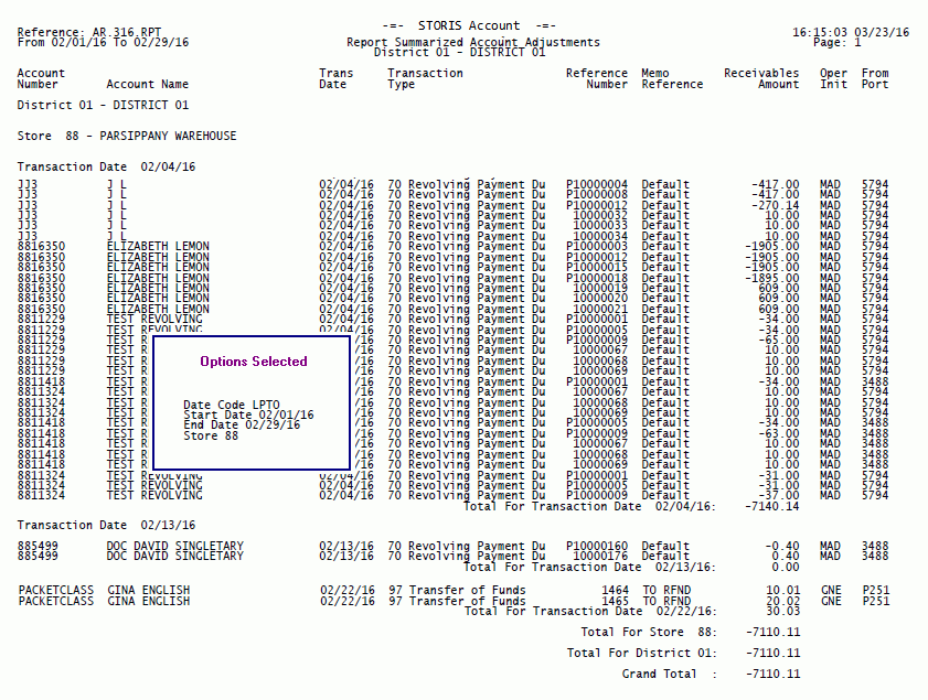 Report Summarized Account Adjustments