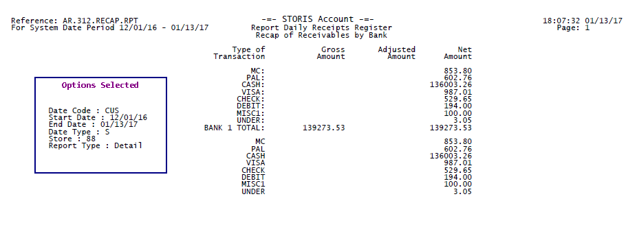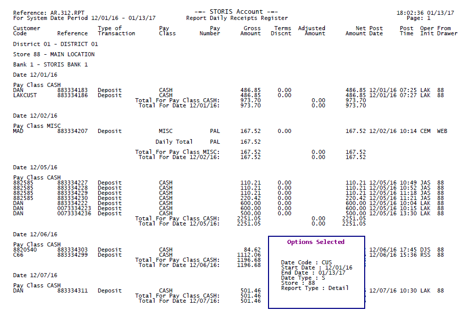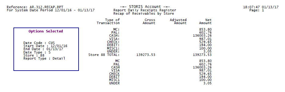 The run-time options selected for each report print on the last page of the report output. The options selected for this report display in the Options Selected box for illustrative purposes only.