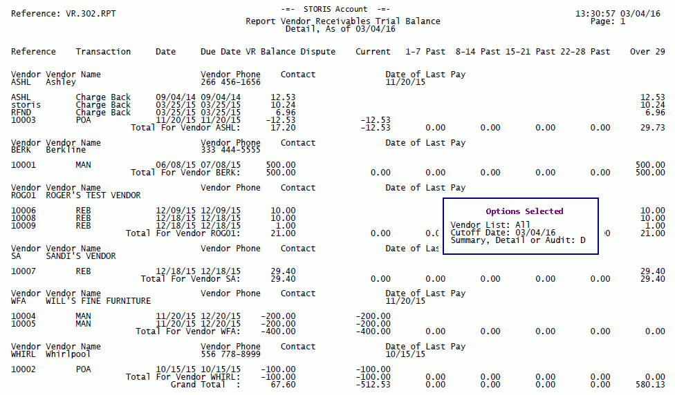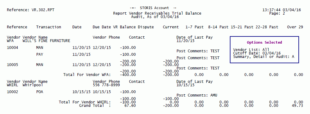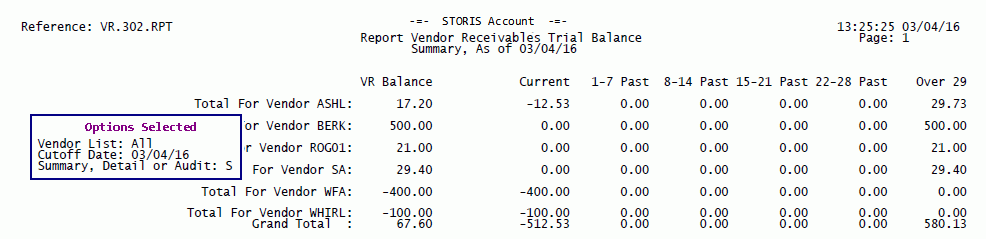 The run-time options selected for each report will print on the last page of the report output. The options selected for this report are being displayed in the Options Selected box for illustrative purposes only.