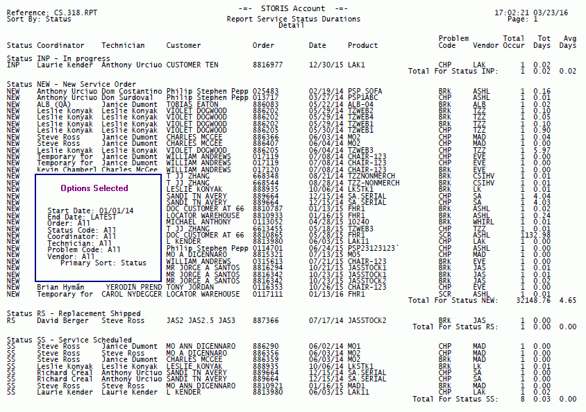 Report Service Status Durations