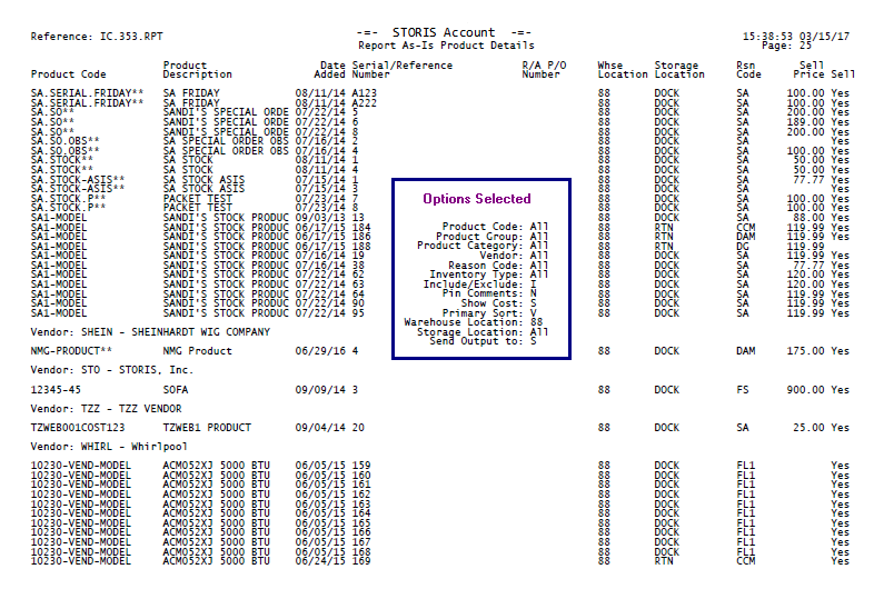 The run-time options selected for each report will print on the last page of the report output. The options selected for this report are being displayed in the Options Selected box for illustrative purposes only.