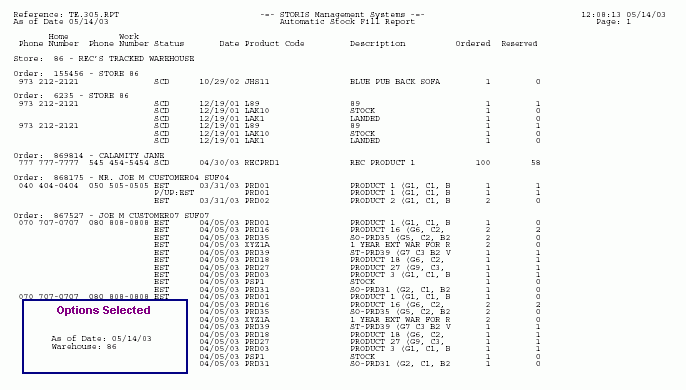 The run-time options selected for each report will print on the last page of the report output. The options selected for this report are being displayed in the Options Selected box for illustrative purposes only.