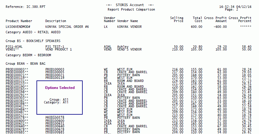 The run-time options selected for each report will print on the last page of the report output. The options selected for this report are being displayed in the Options Selected box for illustrative purposes only.