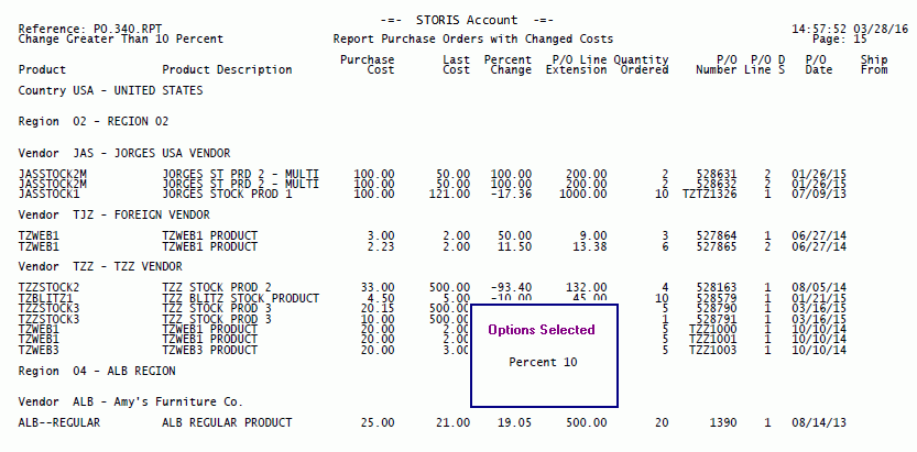 The run-time options selected for each report will print on the last page of the report output. The options selected for this report are being displayed in the Options Selected box for illustrative purposes only.