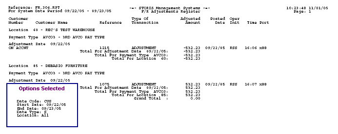 The run-time options selected for each report will print on the last page of the report output. The options selected for this report are being displayed in the Options Selected box for illustrative purposes only.