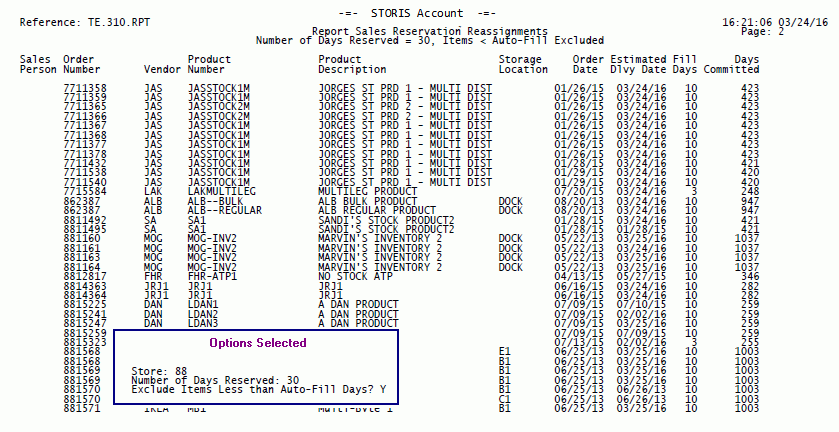 The run-time options selected for each report usually print on the last page of the report output. The options selected for this report are being displayed in the Options Selected box for illustrative purposes only.
