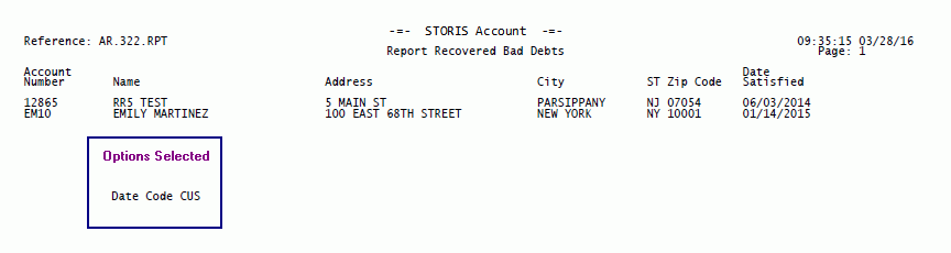 The run-time options selected for each report will print on the last page of the report output. The options selected for this report are being displayed in the Options Selected box for illustrative purposes only.