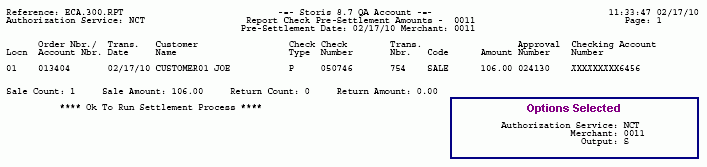 The Options Selected box below displays the selected run-time options for this sample, but does not appear when you run the actual report. The run-time options you select for each report appear on the last page of your report output. To return to the original report topic, click on the browser's Back button above.
