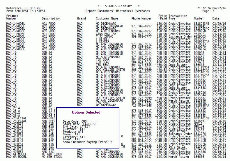 The run-time options selected for each report will print on the last page of the report output. The options selected for this report are being displayed in the Options Selected box for illustrative purposes only.