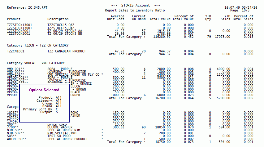 The run-time options selected for each report print on the last page of the report output. The options selected for this report display in the Options Selected box for illustrative purposes only.