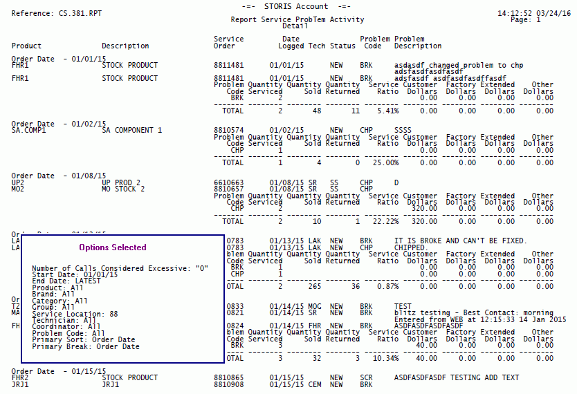 The run-time options selected for each report print on the last page of the report output. The options selected for this report are displayed in the Options Selected box for illustrative purposes only.