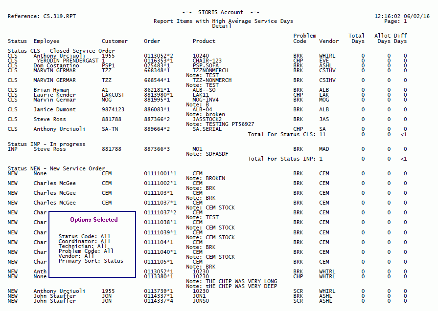 The run-time options selected for each report will print on the last page of the report output. The options selected for this report are being displayed in the Options Selected box for illustrative purposes only.