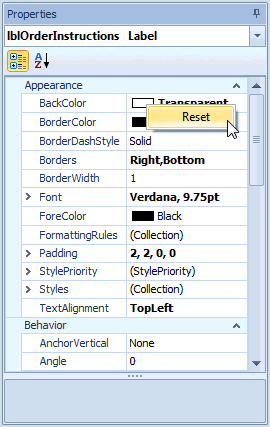 To undo an update to a property, right-click and select Reset (Figure 3.)