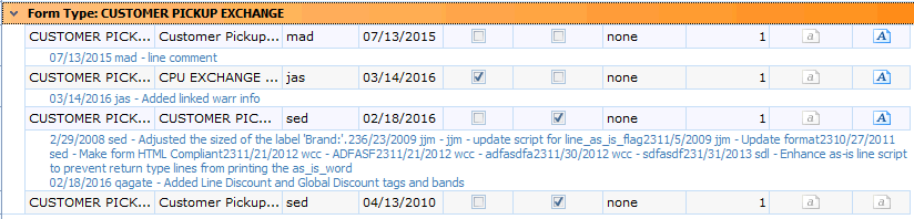 To view all form notes for forms listed in the grid, click Configure View in the upper left corner of the Forms Management screen then select Preview Notes (Figure 3). The notes display in the grid, immediately following the form (Figure 4).
